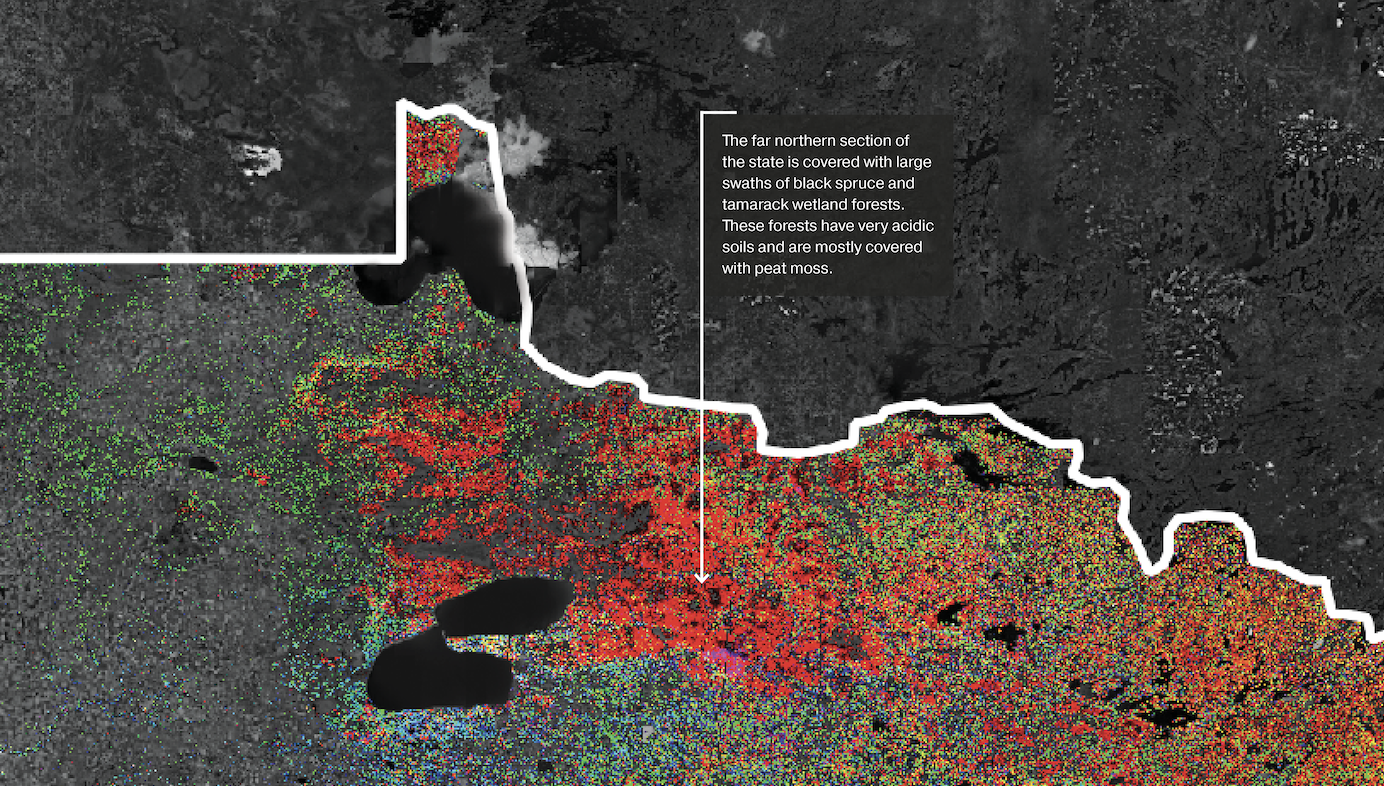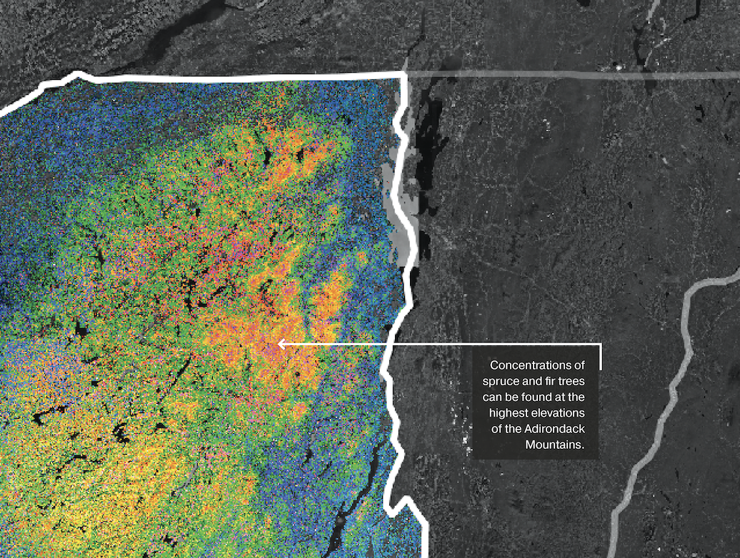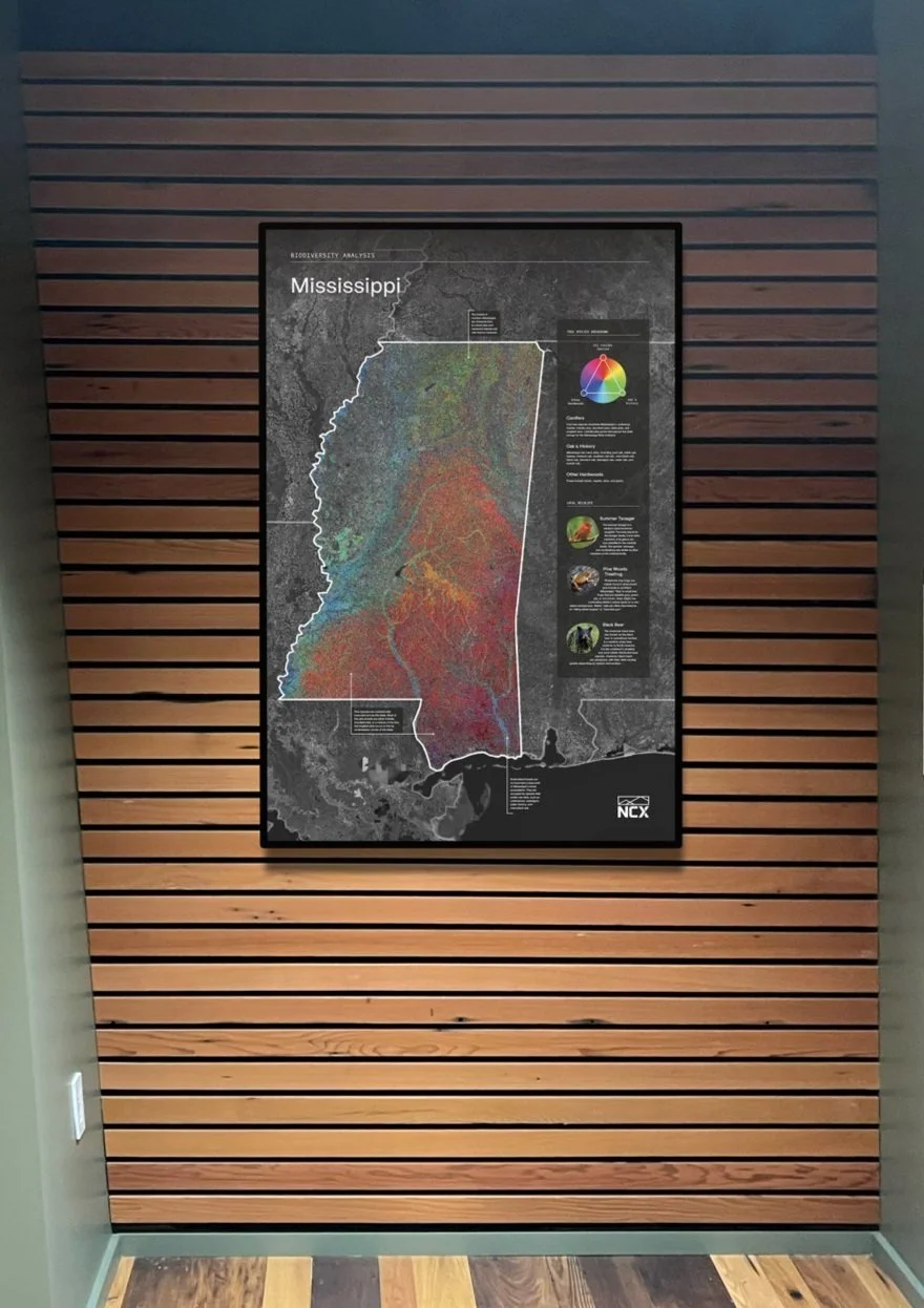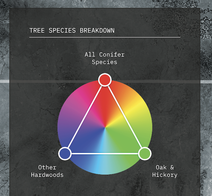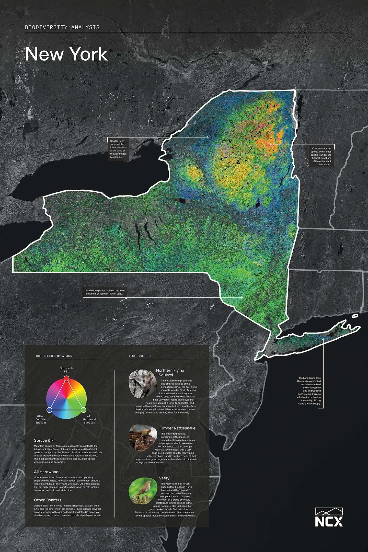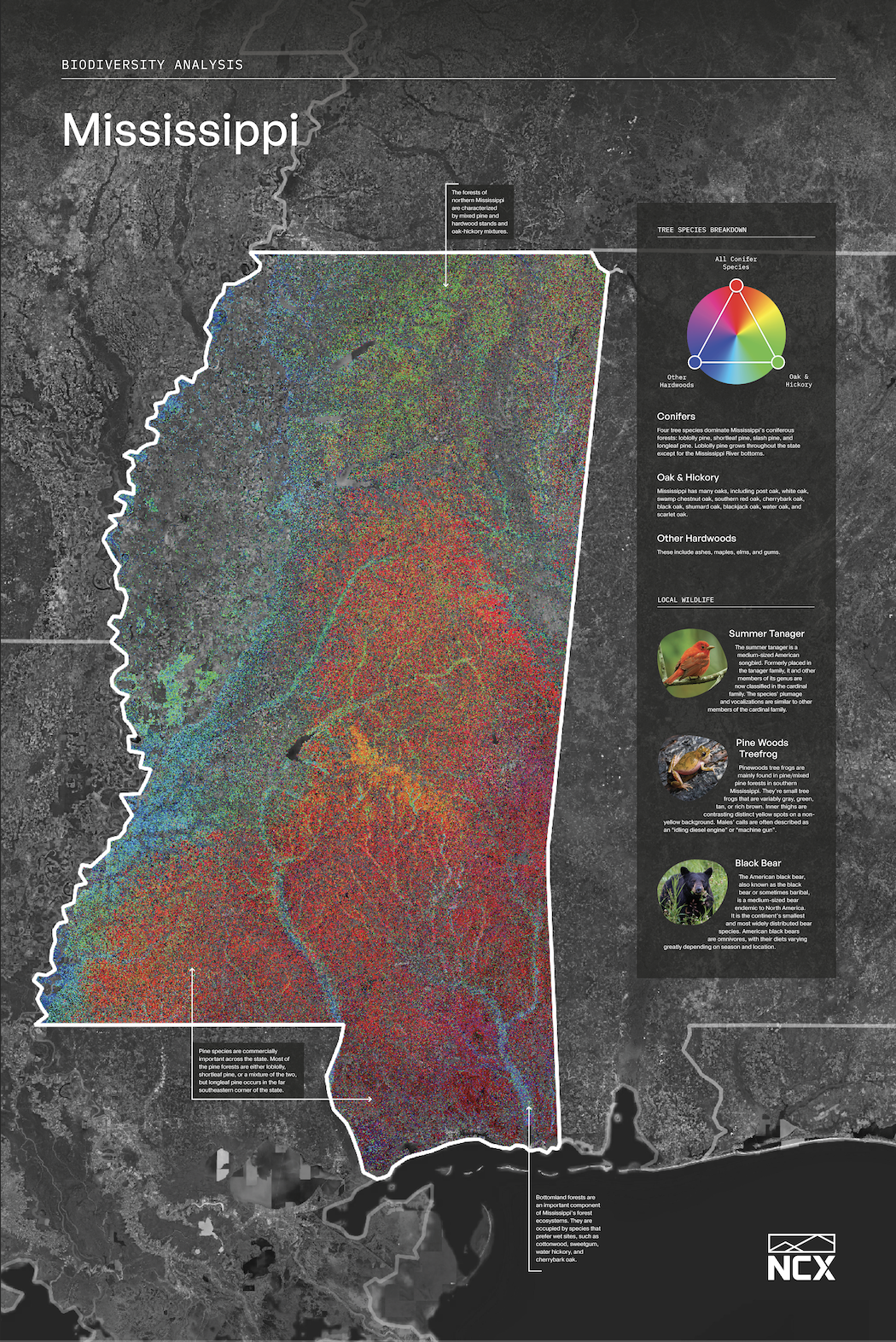 They highlight tree species data collected via satellites and foresters on the ground from each state. The maps also include local wildlife species specific to these regions, showing the importance of how connected ecosystem health and biodiversity is.